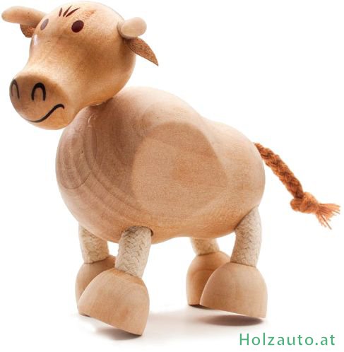 Der Bulle von Anamalz ist cca 10 x 10 cm groß, hat beweglicher Kopf und Seilbeine. Die Ohren sind auch einem weichen brauen Stoff gemacht und er hat einen Seilschwanz.