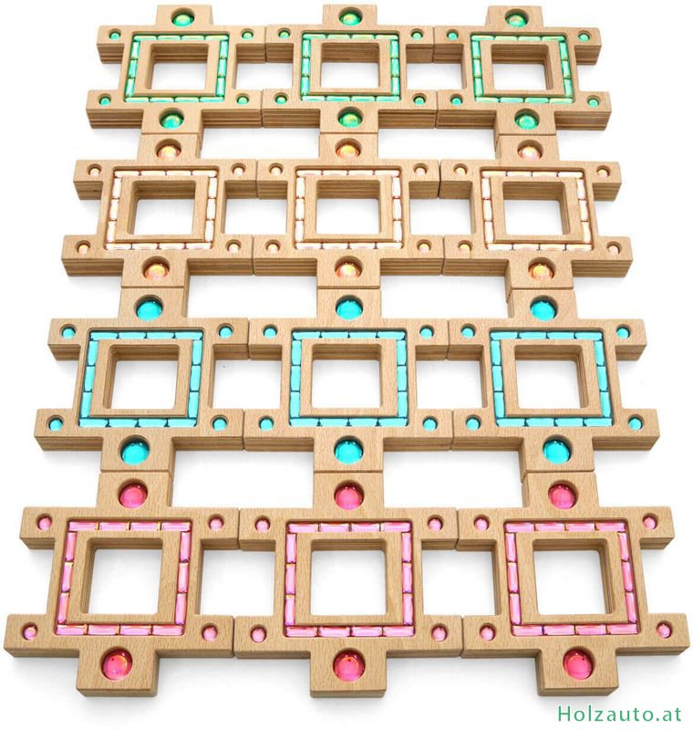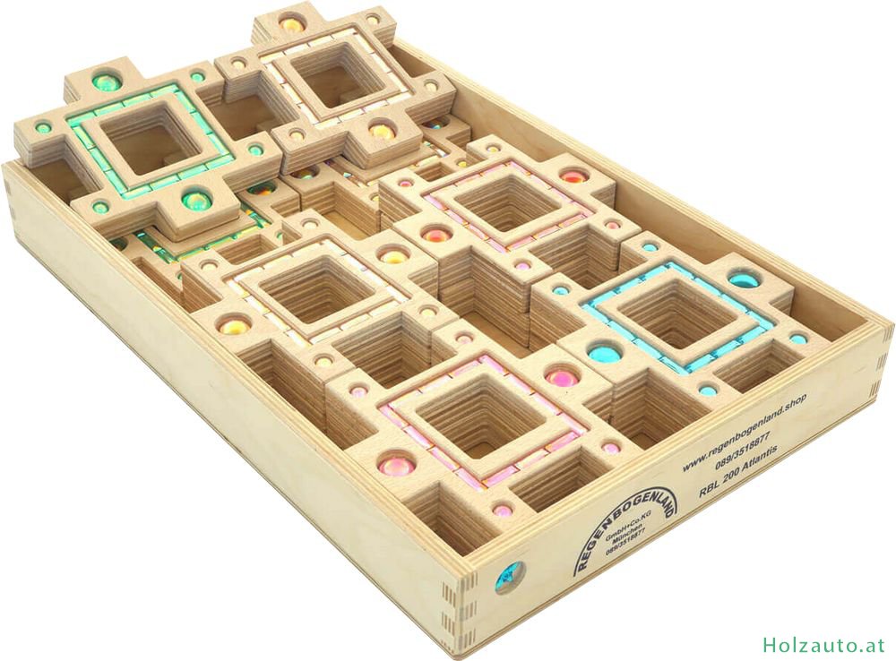 Ein Baukasten, der zur Basisausstattung gehört. Die Atlantis-Elemente verbinden alle Regenbogen-Elemente und ermutigen die Kinder zu großräumigen Projekten.