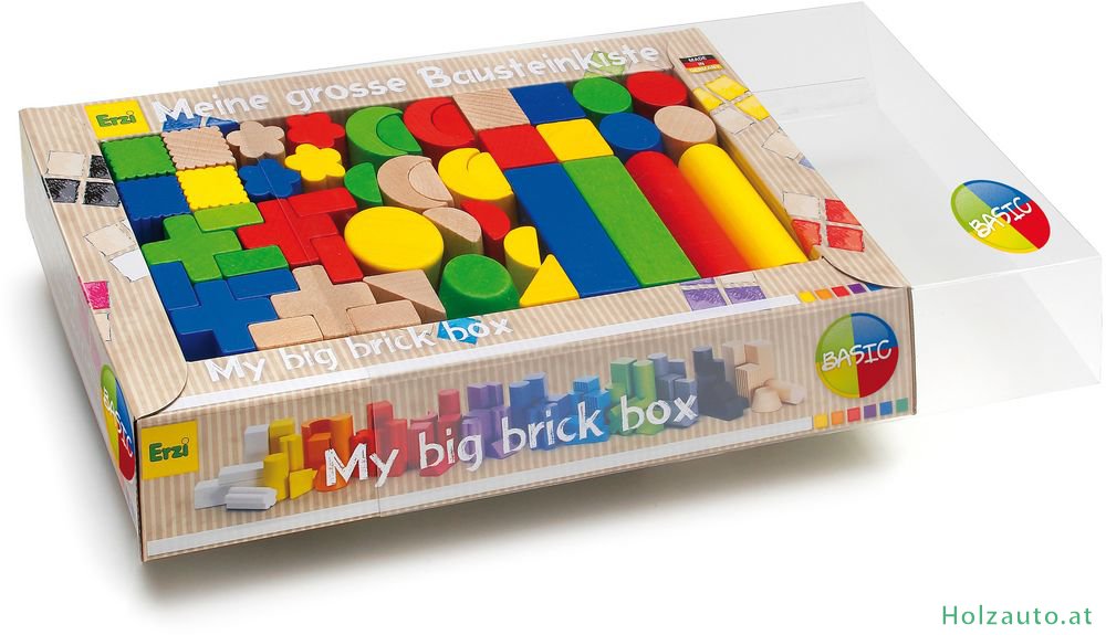 12 verschiedene Bausteinformen in vier Farben und Natur. Das besondere an den Erzi-Bausteinen sind die vielen verschiedenen Formen, die ein unverkennbares Bauen und Spielen bieten. Durch die einheitlichen Größen und Rastermaße sind alle Steine in allen Varianten miteinander verbaubar.