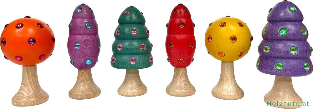Bäume in unterschiedlichen Farbtönen, mit farbigen Steinen bestückt.