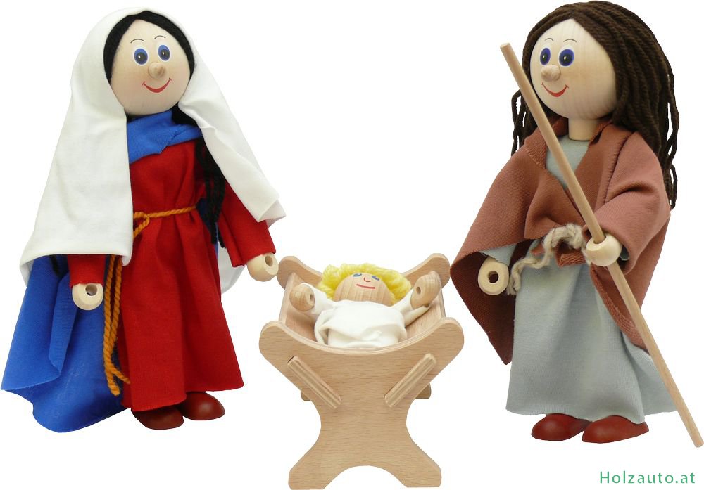 Das Set besteht aus 2 Biegepuppen Maria und Jofes, Jesuskind und Krippe