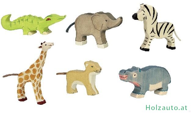 Die HOLZTIGER-Figuren stehen seit vielen Jahren für Spielwert und höchste Qualität - "Made in Europe". Sie werden einzeln aus massivem Ahorn- und Buchenholz handgearbeitet, sanft abgerundet und mit Farben auf Wasserbasis bemalt.