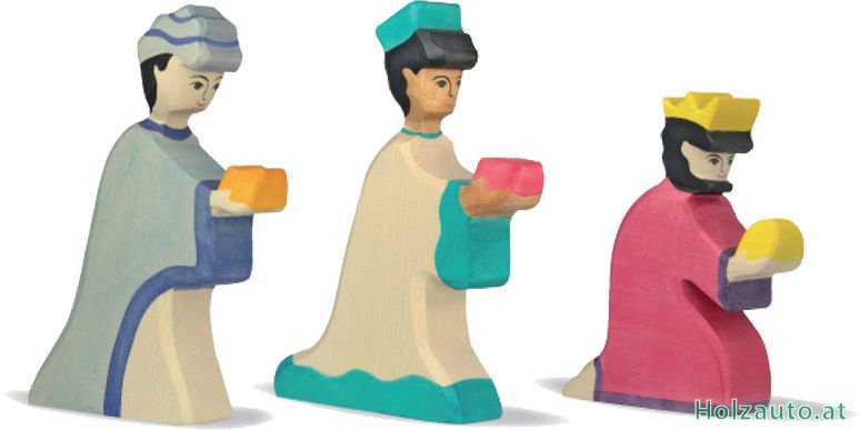 Das Set enthält 3 Figuren - Casper (blau), Melchior (grün) und Balthasar (rot).