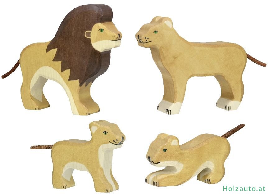 Das Set enthält 4 Tiere - Löwe, Löwin, Löwe klein stehend, Löwe klein spielend.