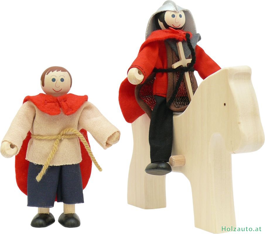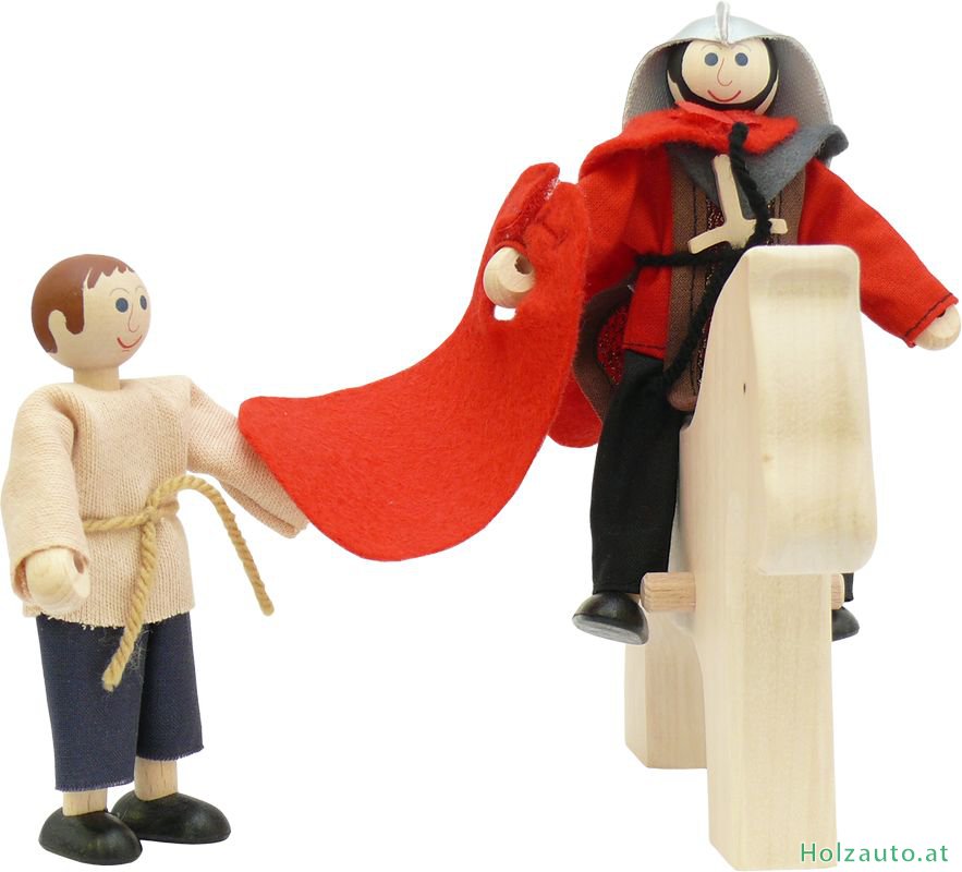Set besteht aus: Martin (Ritter) mit einem 2-teiligen Mantel und Schwert, Bettler, Pferd. Figurengröße: Martin 13 cm, Bettler 11 cm.