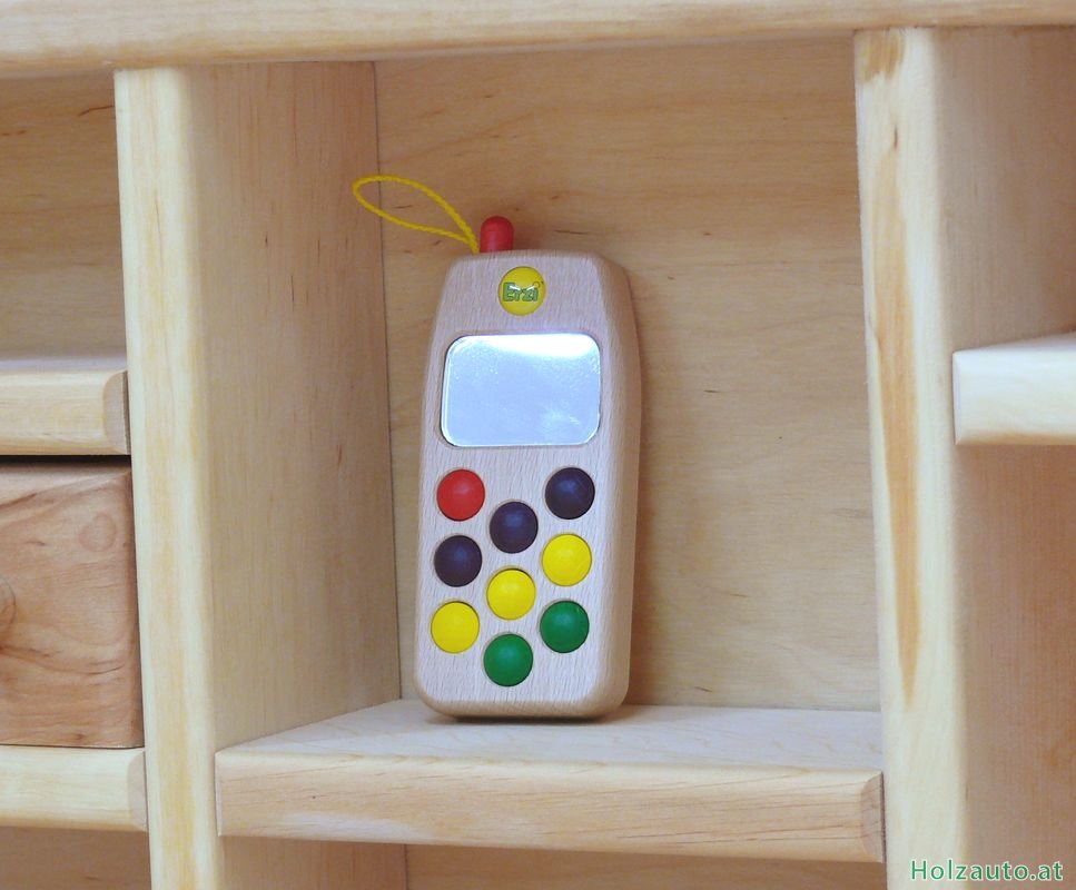 Ein schönes Telefon ist aus massivem Holz gefertigt.