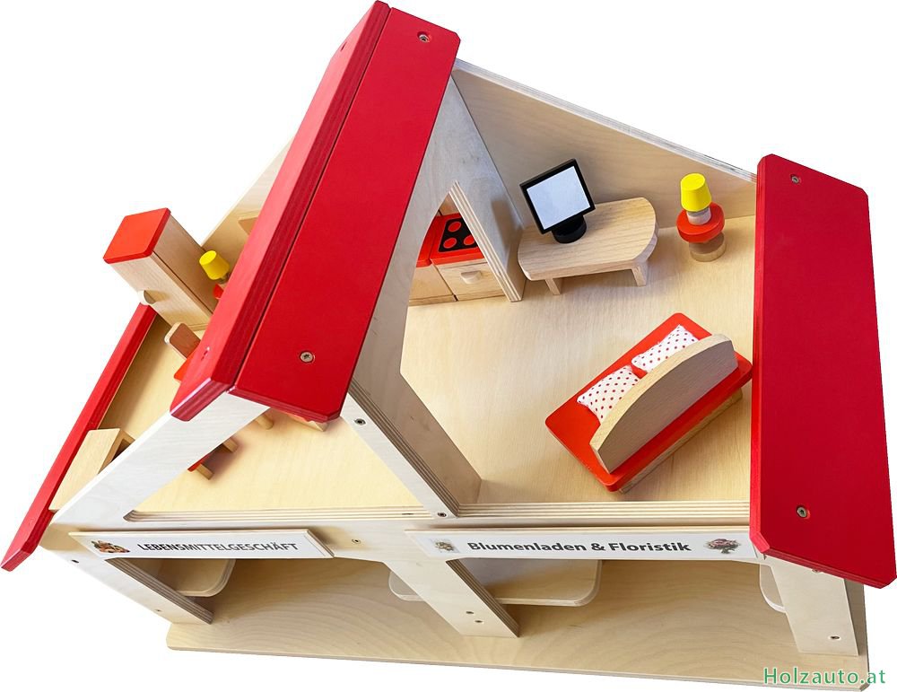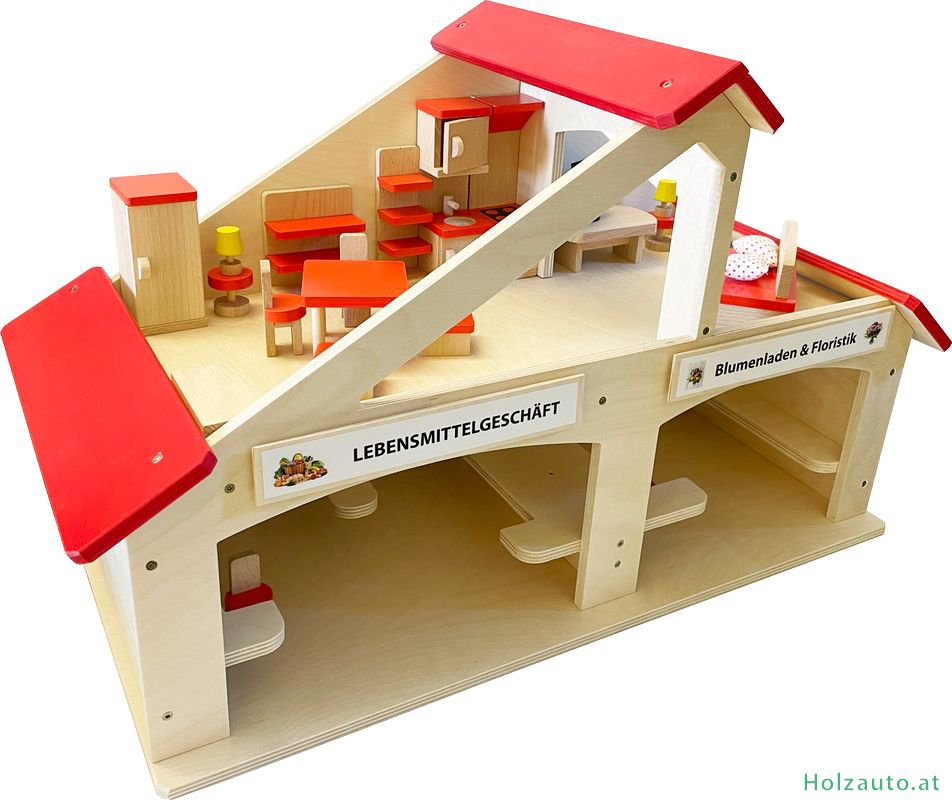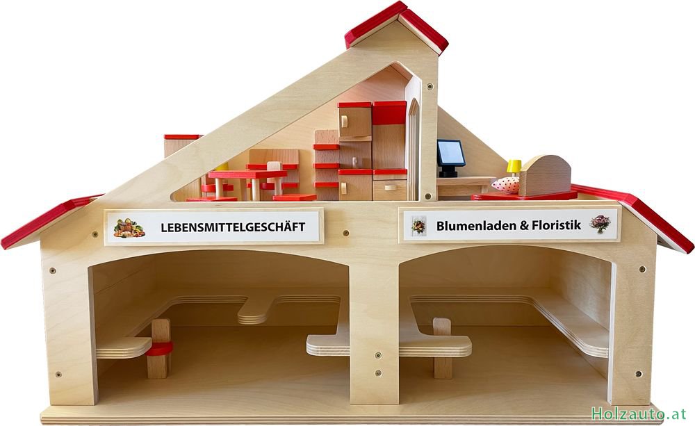 BeschreibungGröße: 65×39,5×29 cm Ein Haus mit 2 Geschäften und mit einer Wohnung. Material