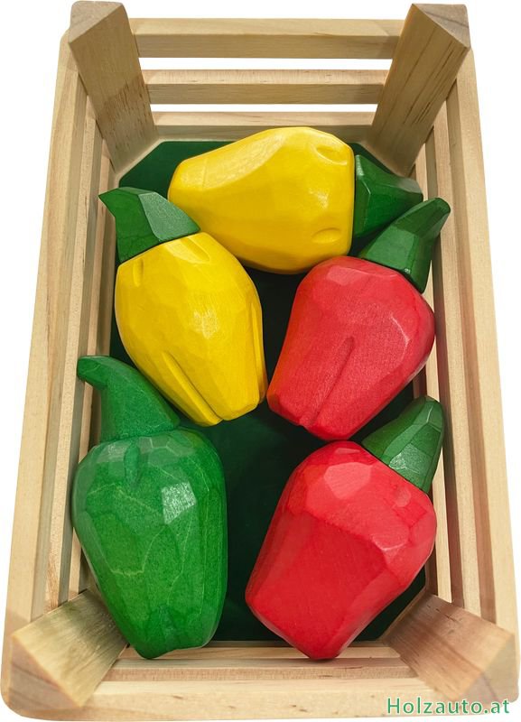5x Paprika - 1x grün, 2x rot und 2x gelb in der Steige.