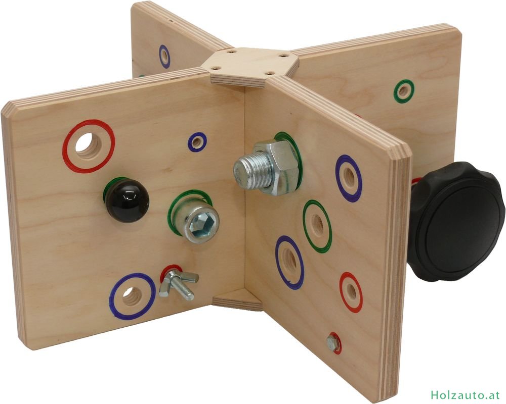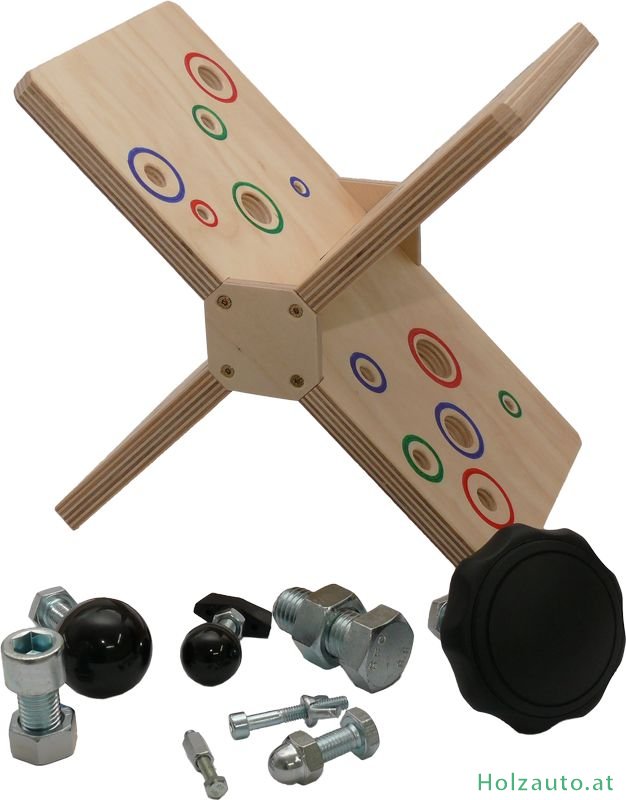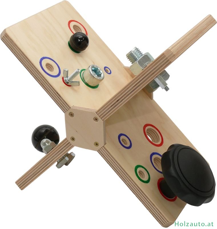 8 Schrauben mit verschiedenem Durchmesser sind in den richtigen Löchern zu schrauben.