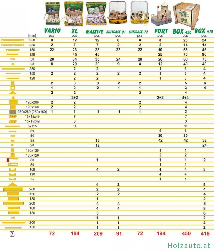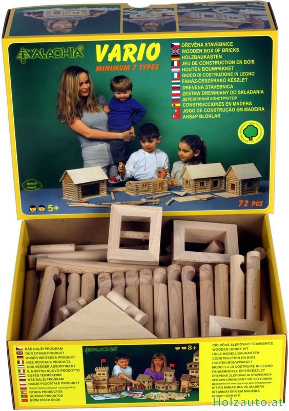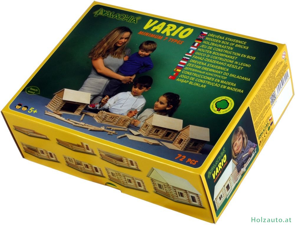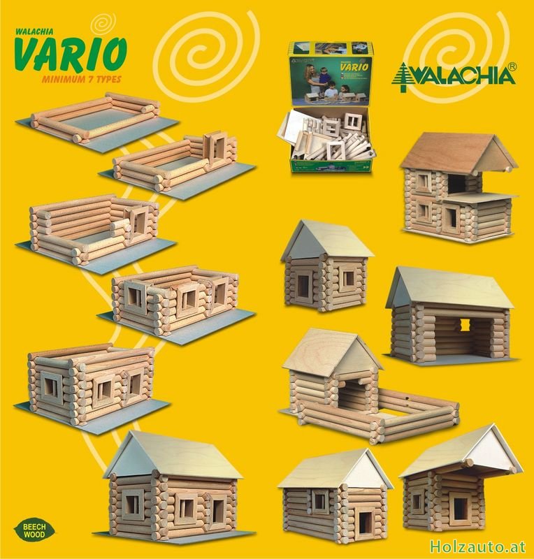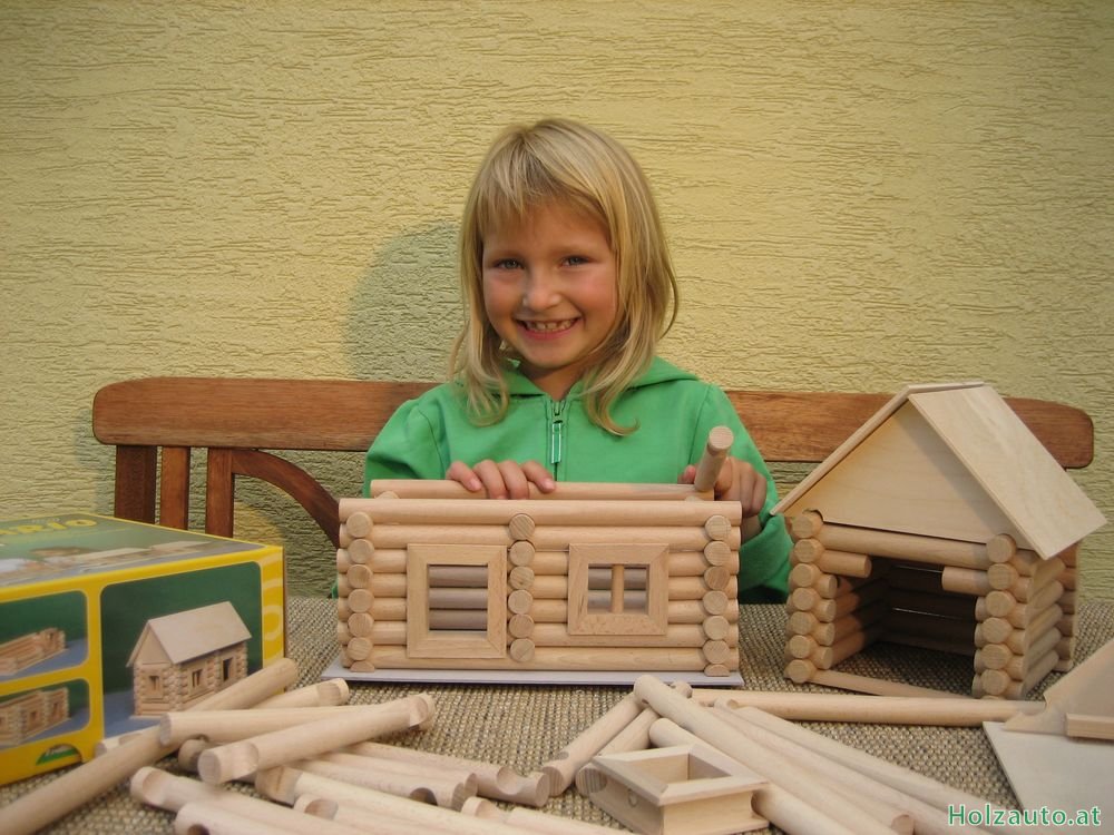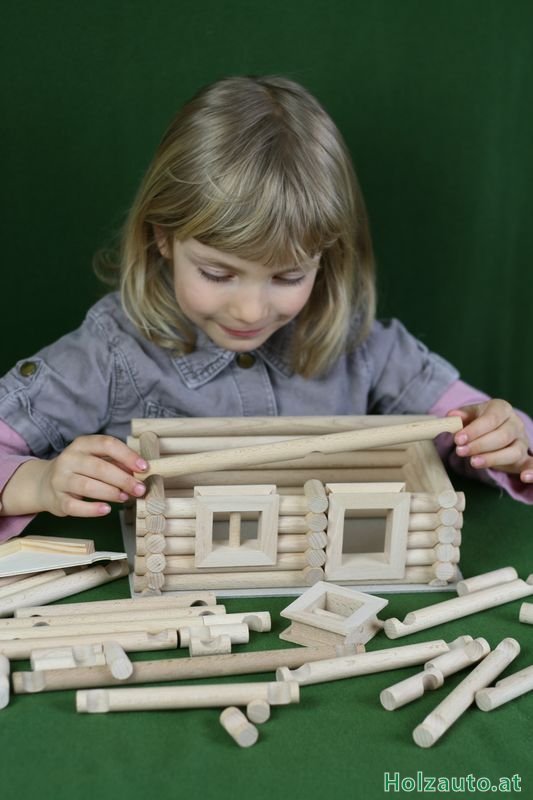 BeschreibungZusammensetzbarer Baukasten VARIODiese VARIO-Version besteht aus 72 Teilen, mit denen man mindestens 7 verschiedene Bauwerke zusammenstellen kann. Wie der Name schon verrät, kann man aus dem Inhalt des Baukastens VARIO mehrere Varianten verschiedener Bauwerke zusammensetzen. Man kann sie zusammenbauen und dann wieder zerlegen. Den kleinen Bauherren helfen wir mit Bildvorlagen verschiedener Bauwerke auf der Verpackung, es gibt aber viele andere Möglichkeiten nach eigenen Vorstellungen und Ideen. Jeder Bausatz beinhaltet Buchen-Rundhölzer mit dem Durchmesser 15 mm und in verschiedenen Längen. Mit Hilfe von Ausfräsungen an beiden Enden des Balkens kann man Bauwerke nach eigenen Vorstellungen zusammenfügen, ähnlich der Blockhaus- Bauweise. Die Dachschrägen werden einfach mit Hilfe von Klettverschlüssen zusammen verbunden. Auch die Fenster und Türen sind aus massivem Buchenholz (selbstverständlich ohne schädliche Substanzen) hergestellt. Alles ist in einem hochwertigen Karton mit Deckel verpackt, welcher eine lange Lebensdauer garantiert. Dieser Bausatz ist für Kinder ab 5 Jahre bestimmt. Alle VARIO-Baukästen kann man miteinander kombinieren und ein monumentales Bauwerk zusammenstellen. Sämtliche Spielwaren in unserem E-Shop erfüllen die Richtlinien der europäischen CE-Kennzeichnung. Weitere Bilder & VideosHerstellerVerwandte Produkte (2)Kunden, die diesen Artikel gekauft haben, haben auch gekauft... |