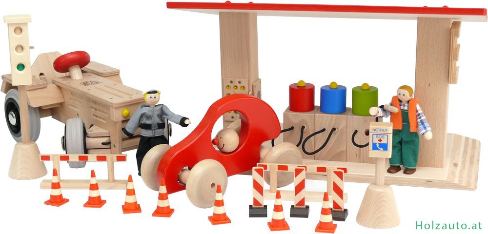 Holzfahrzeuge, Straßenverkehr, Lenkräder, Tankstelle & Parkhäuse
